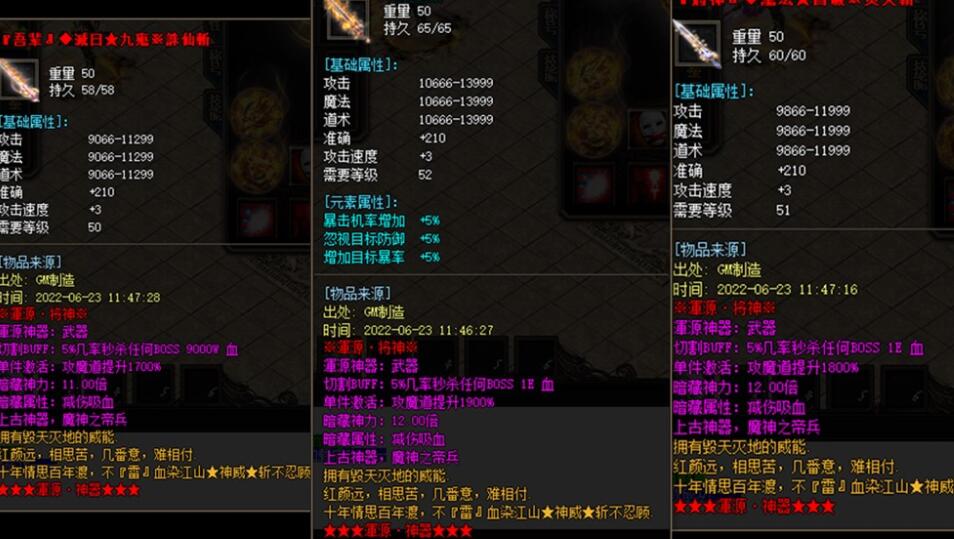 游戏等级好升,装备好打!所有装备靠打怪均可爆出!