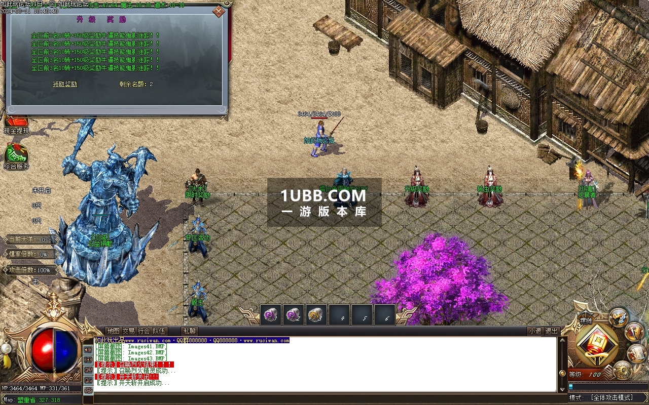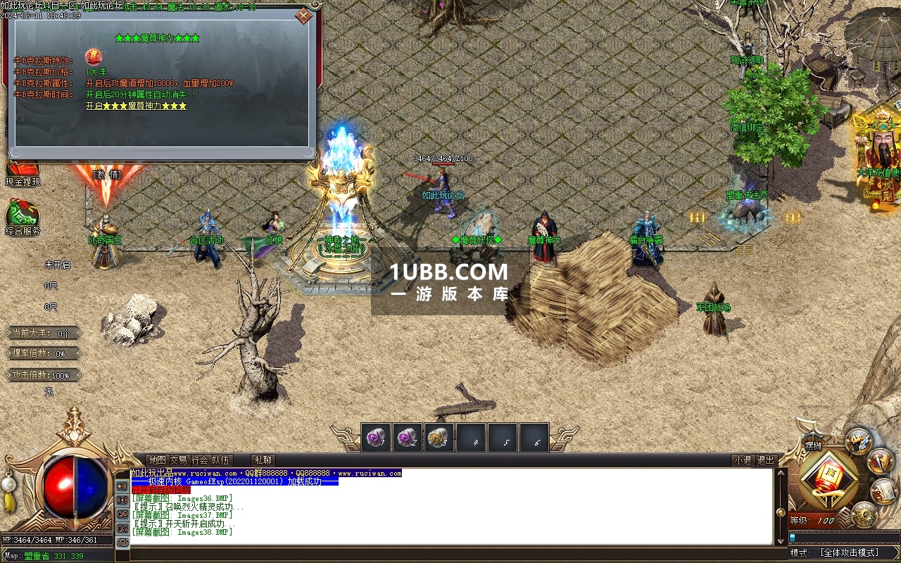 - 装备合成:利用三大陆的资源,开始合成玉佩、加血石、盾牌、斗笠等四格装备,初期合成可在都城左上角的鬼父神工处进行。