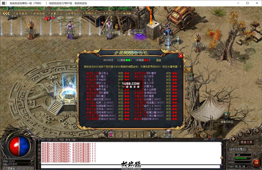 BOSS时间表:记录各BOSS刷新时间,提前10分钟蹲守。