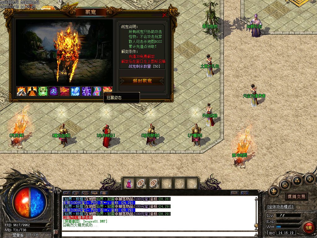 怪物标识:249本地图全部为BOSS,小BOSS,大BOSS,等全服各种BOSS/SCOLOR=249