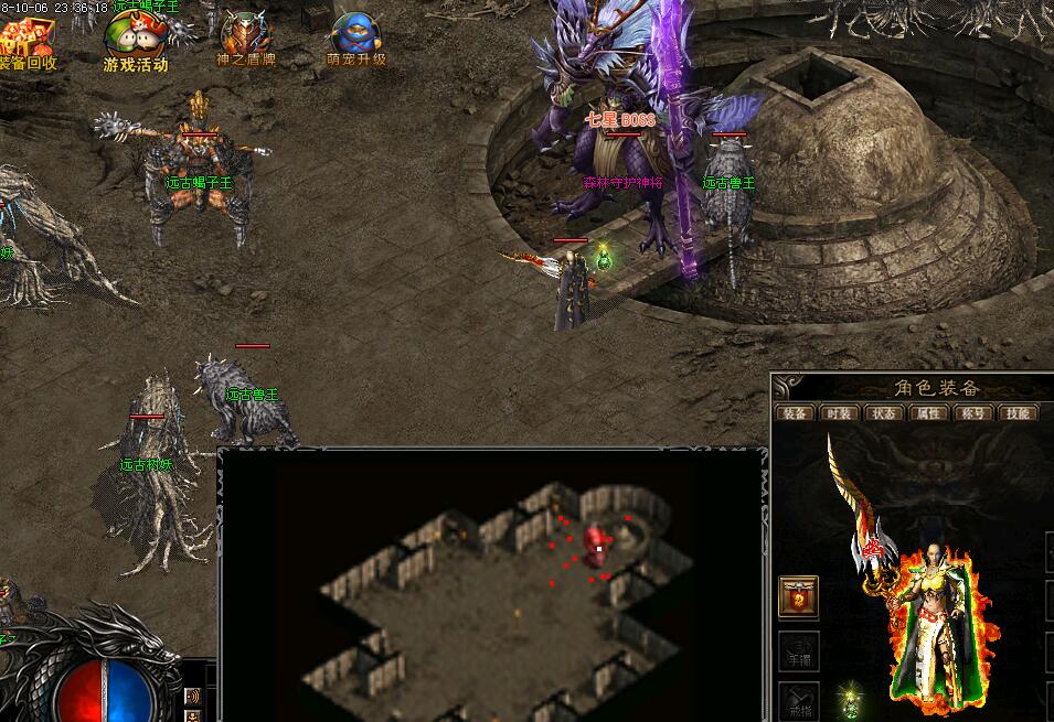 游戏中的每一件装备都这不同的等价,不同等价的装备用不同的颜色的名字来表示,最高等价的红色名字的装备,出现的几率几乎是没有可能,不过可以通过土城的NPC进行装备进化,每次进化需要大量的元宝。
