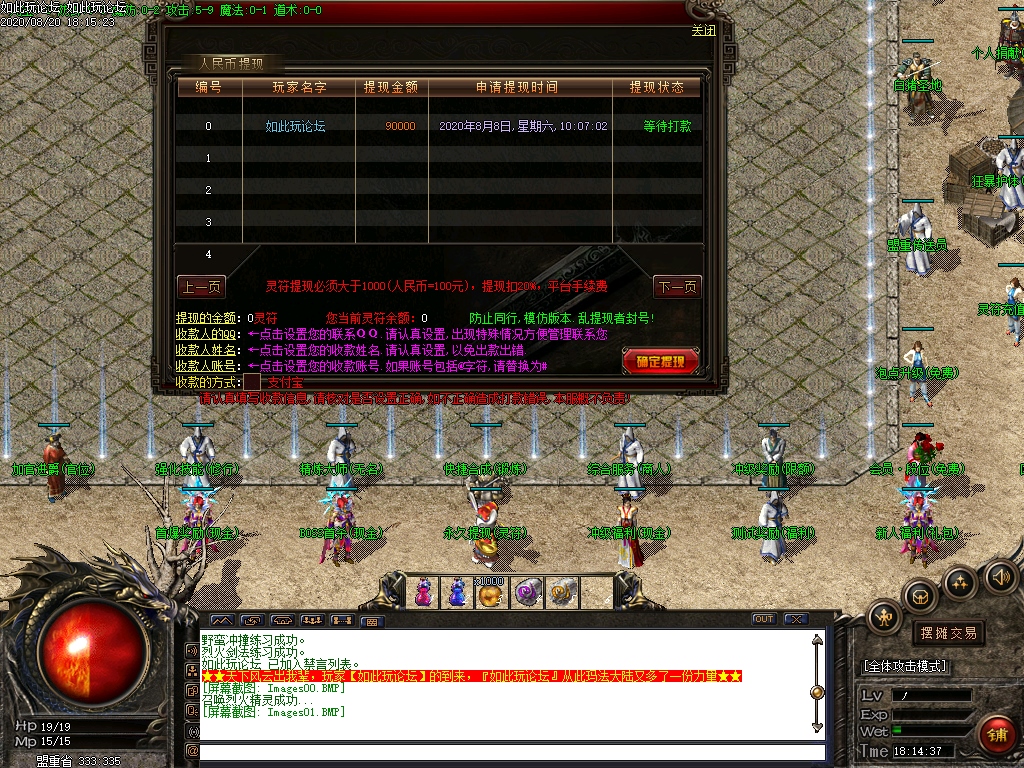 3.特殊装备篇:神秘符语,副本,野外BOSS都可掉落.也可以用荣誉兑换部分44上古神器,找到南华老仙免费领,也可以用荣誉兑换盾牌装备,打野外BOSS,远古战场的荣誉怪物得荣誉去锻造,主加血